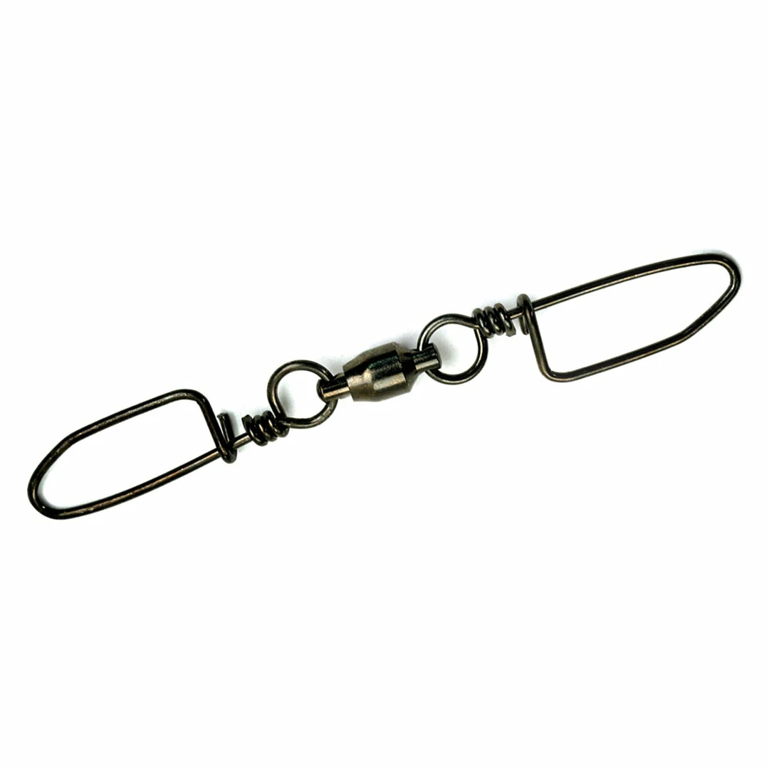 Billfisher ball bearing double snap swivels are ideal where double leader/lure attachment is necessary, along with the added convenience of smooth swivel rotation. Stainless steel construction.
