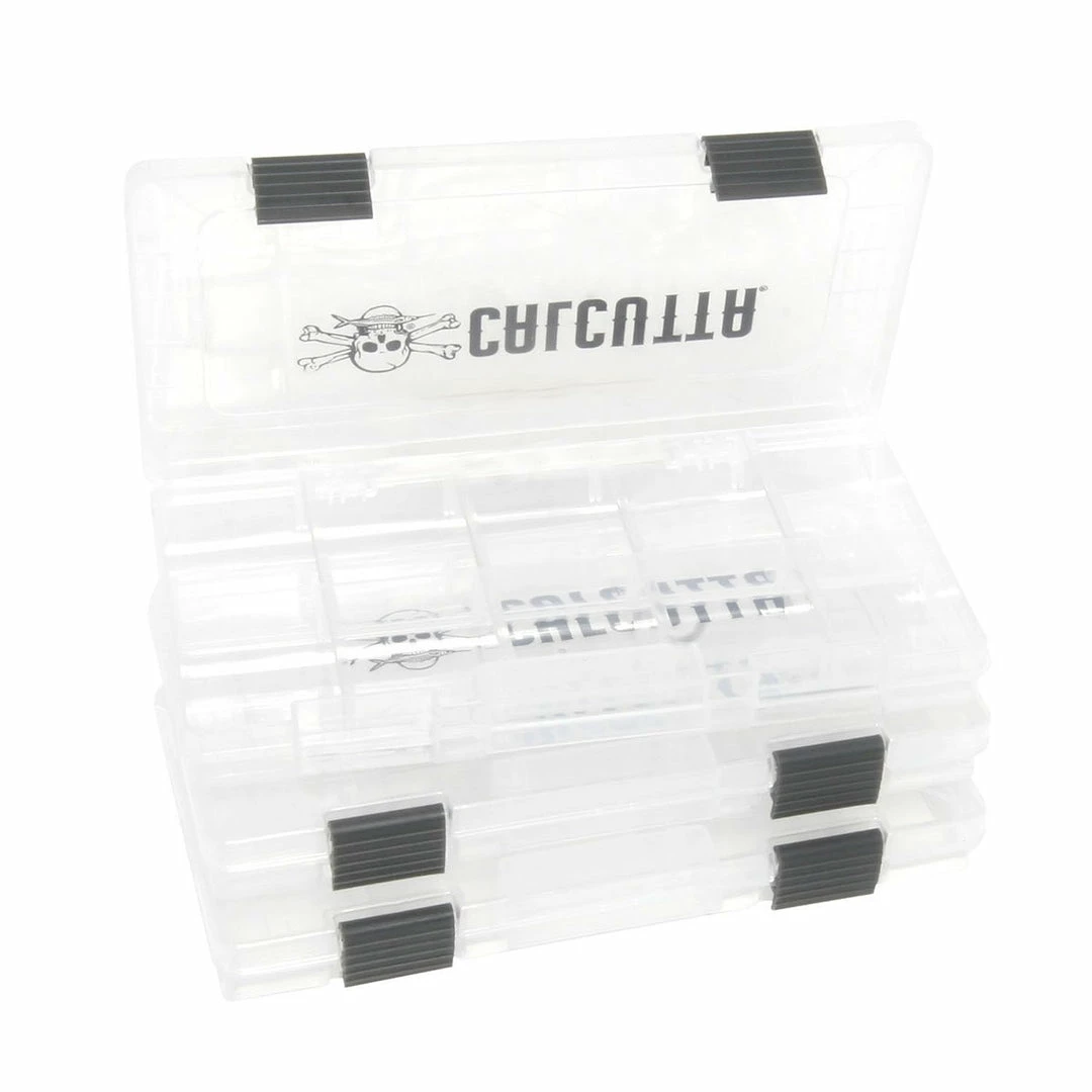 Keep your tackle organized with the Calcutta Tackle Trays. Great for separating terminal tackle, soft plastics, stick lures, or even items around the house. The adjustable dividers allow you to customize your tackle tray to your contents. See through for quick gear recognition. Heavy duty hinges keep the lid closed when you need it the most. Three (3) pieces per pack.