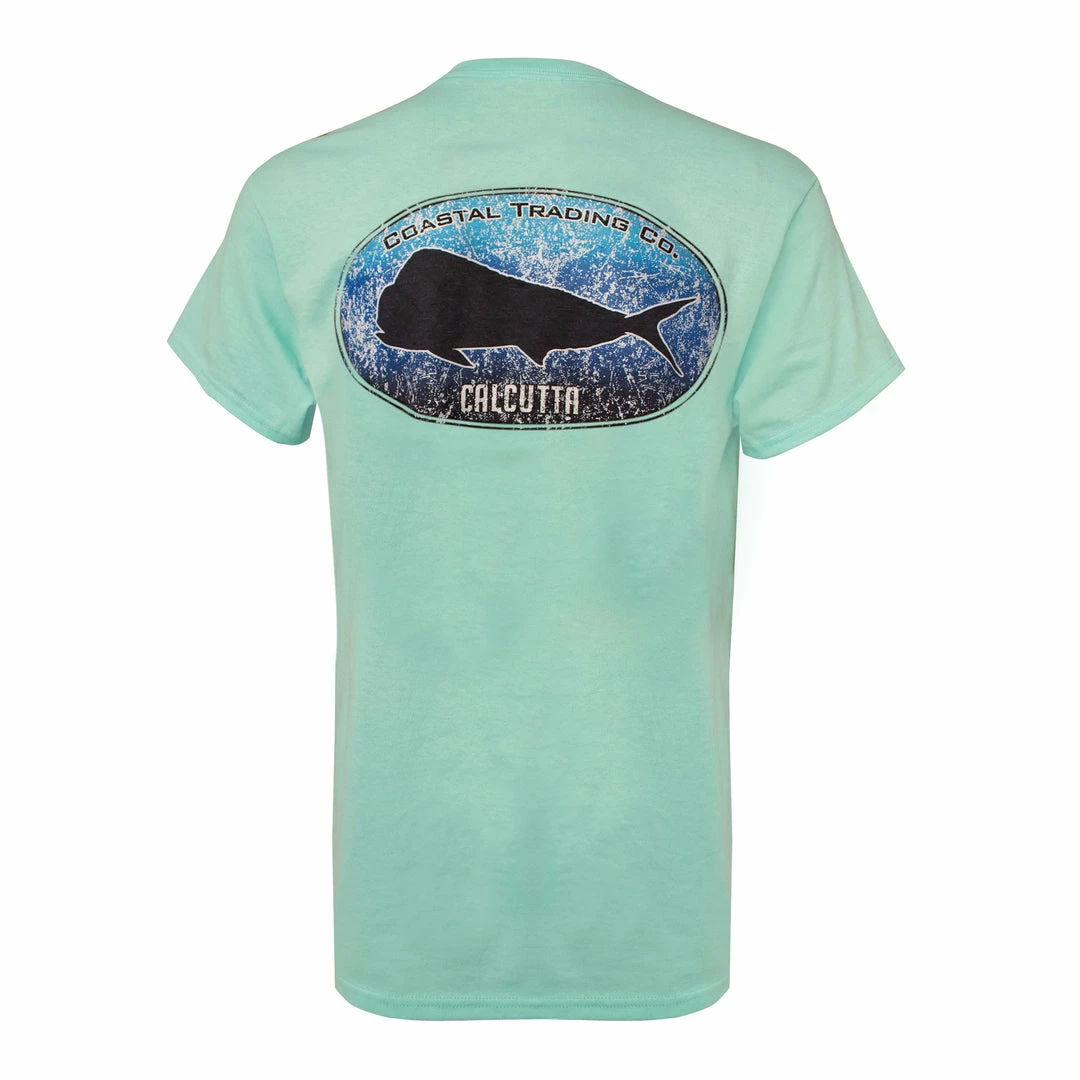 Super soft short sleeve t-shirt with mahi silhouette in blue fade.