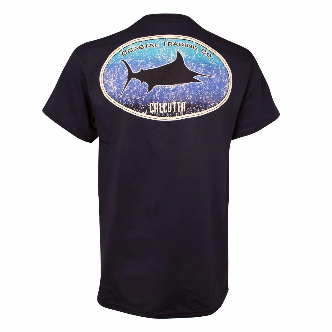 Super soft short sleeve t-shirt with marlin silhouette in blue fade.