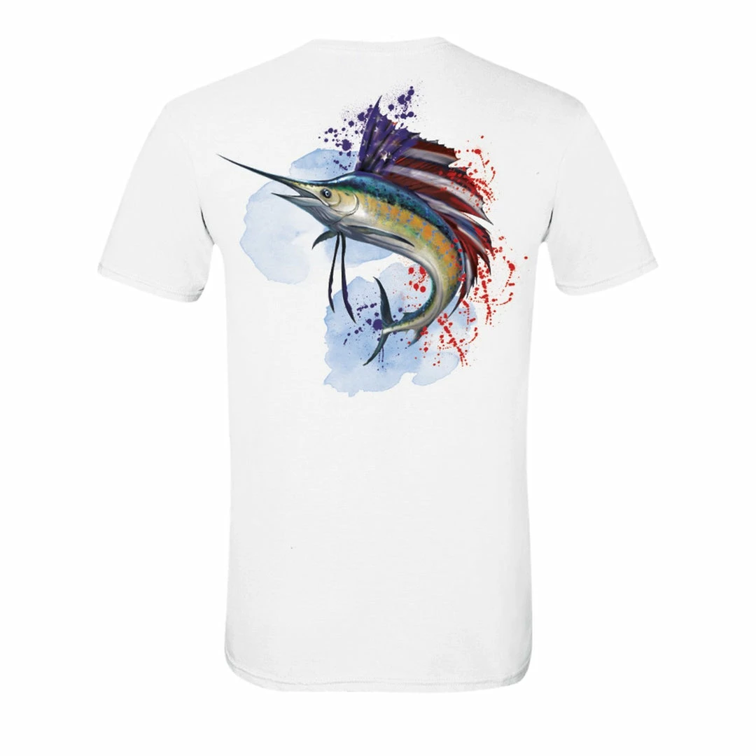 Calcutta Men's American Flag Marlin T-shirt Apparel Navy