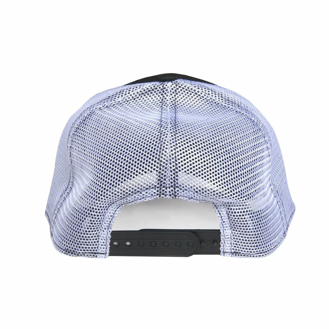 Six panel mesh back hat with sailfish patch. Adjustable plastic closure.