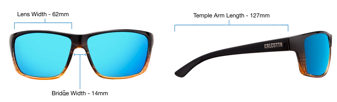 Sizing: Lens Width 62mm, Bridge Width 14mm, Arm Length 127mm