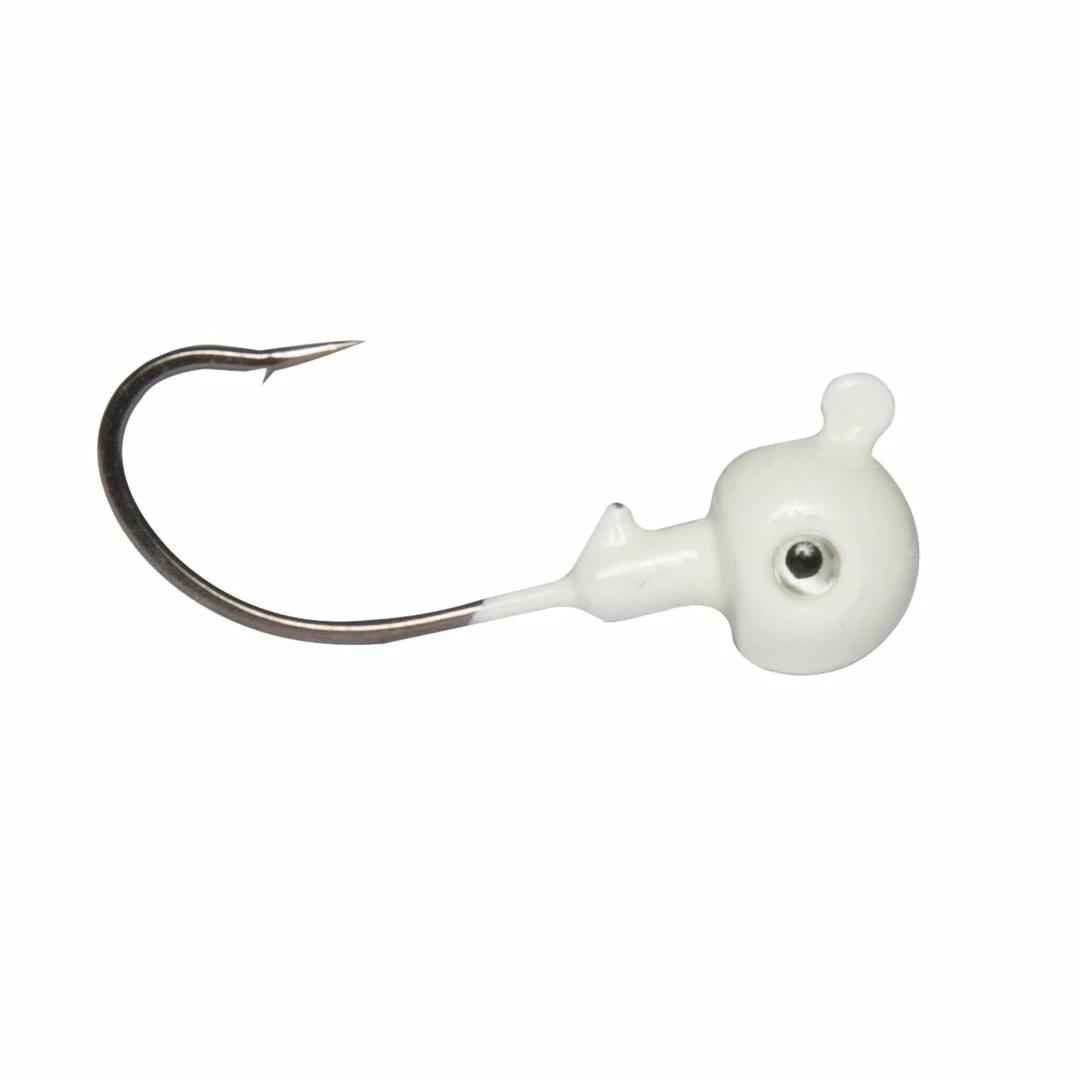 These round jig heads are designed with a flat back for a snug fit with soft plastics. 3D eyes give a realistic life-like look. Five per pack.