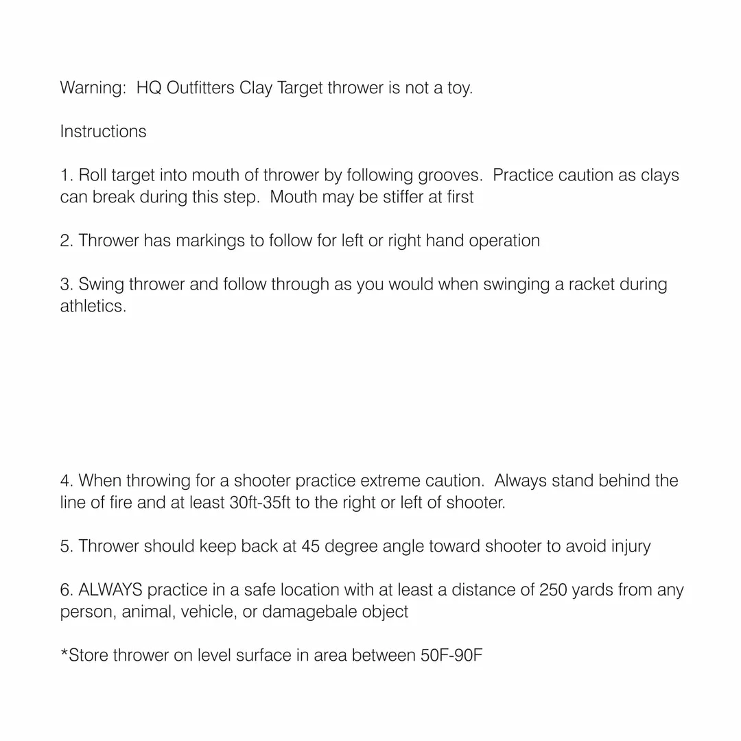 Clay Target Thrower fits 4.5″ standard clays. Use with right or left hand. Lightweight, one piece, plastic construction.