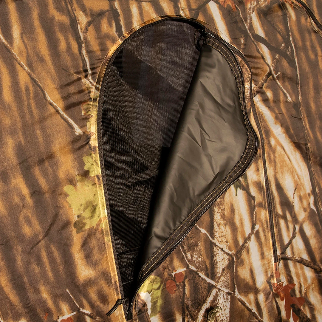 The HQ pop up blind easily springs open into shape as soon as you pull it from the bag. Double window designs on 3 sides allow for complete views of any incoming game. Once the hunt is done, easily fold up the blind and take it with you without leaving a trace.