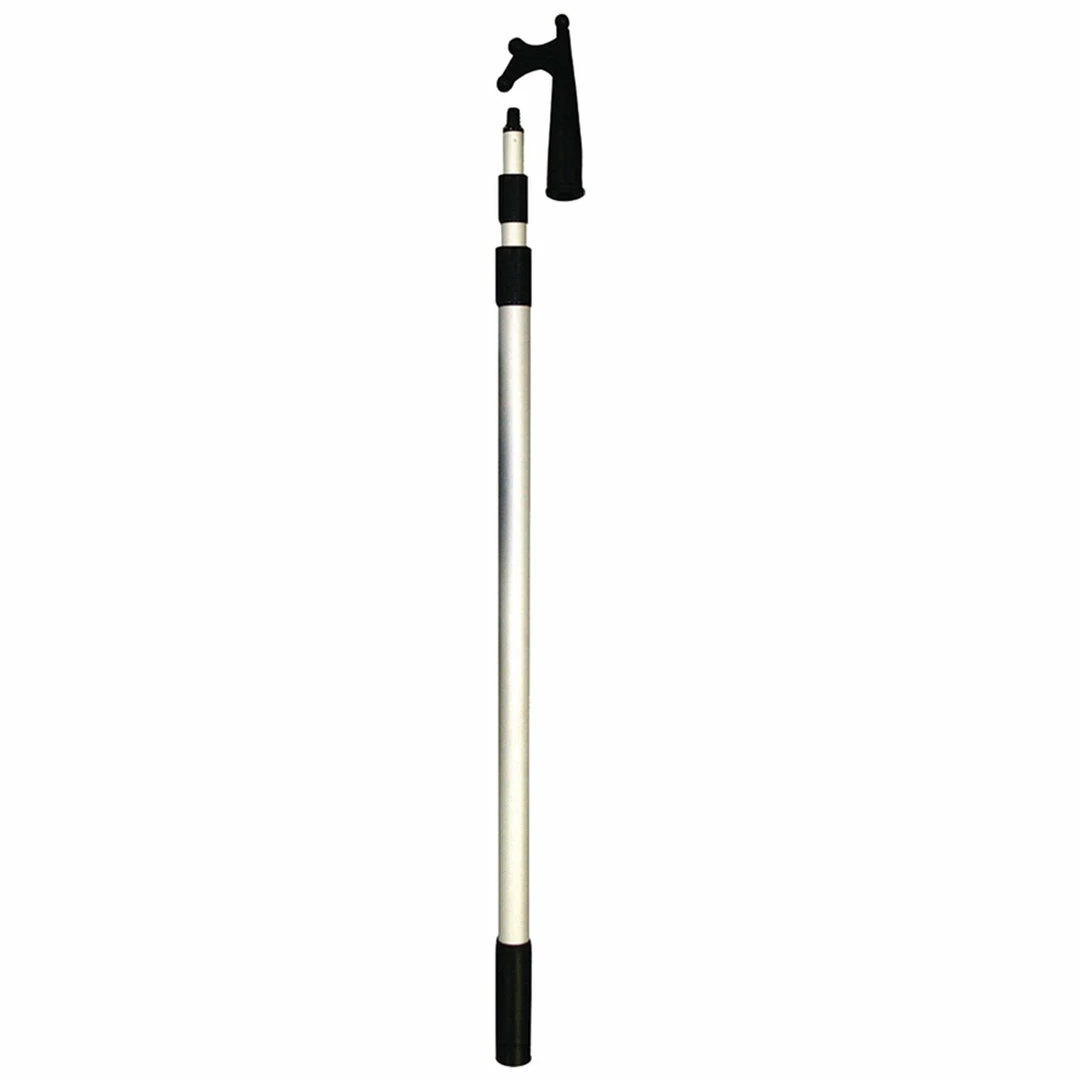 Corrosion resistant anodized aluminum boat hook. 3 Piece telescopic handle from 45″ to 96″. Telescoping handle has a positive CamLock for more secure use and easy stowing.