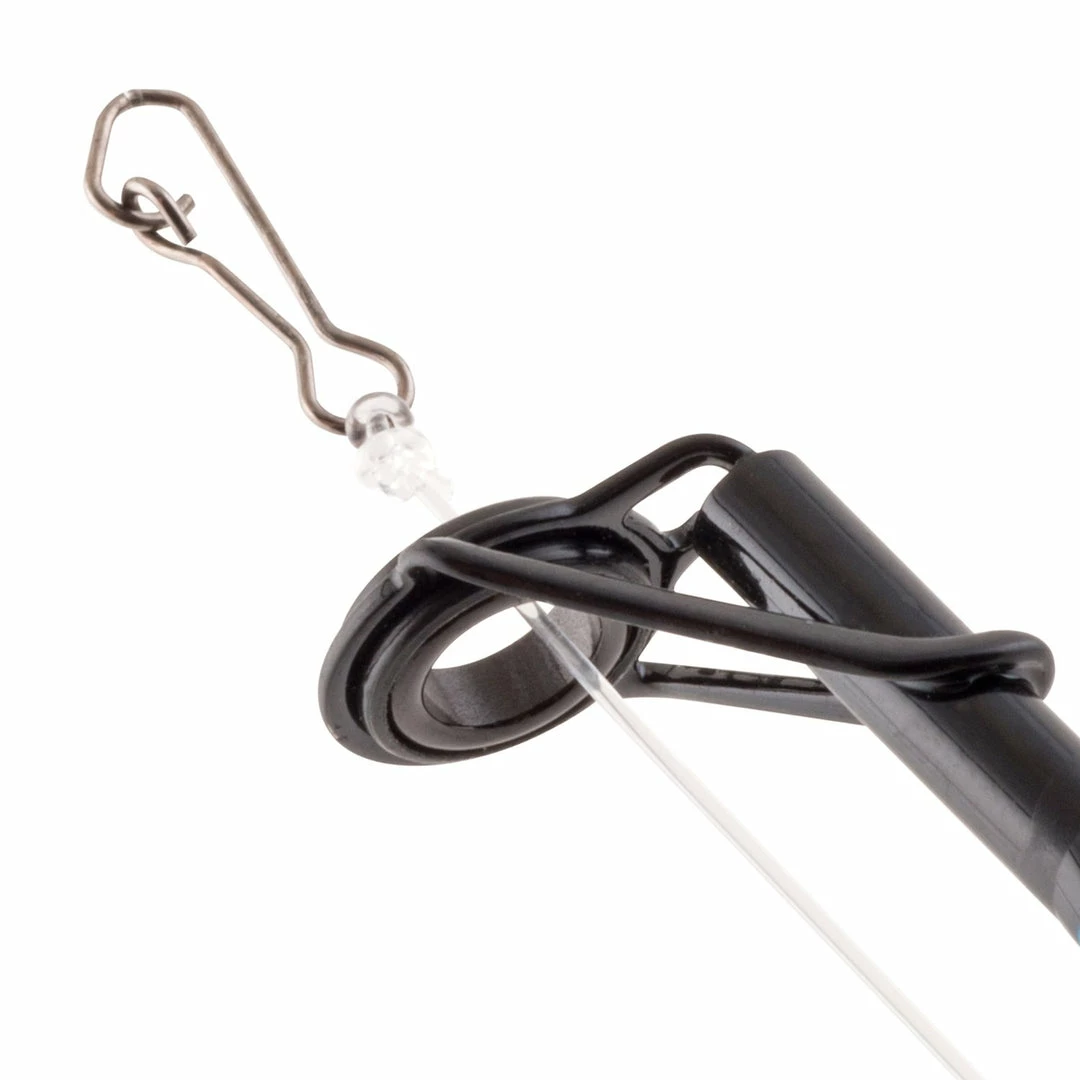 - No Knots Fishing System featuring a snap that is already tied onto your line