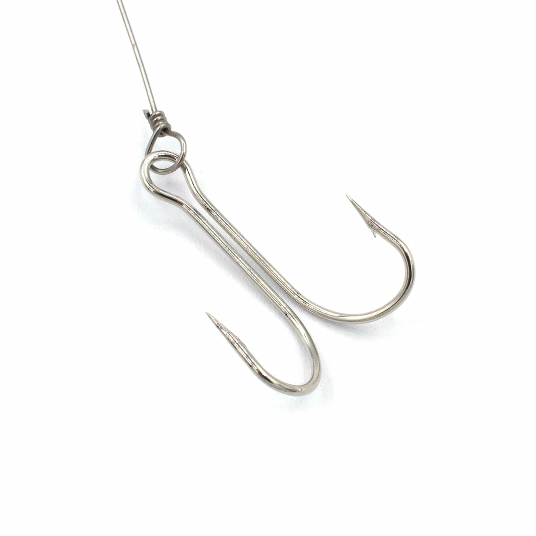 An excellent lure fo Bluefish and drum. The split 2/0 two-hook treble can be removed allowing you to properly rig the finger mullet bait. Rig has a black 1/0 3-way swivel and a large duolock snap for simple attachment. 80lb monofilament, #25 wire and 1 1/4″ pear float complete the rig. Rigging instructions included.