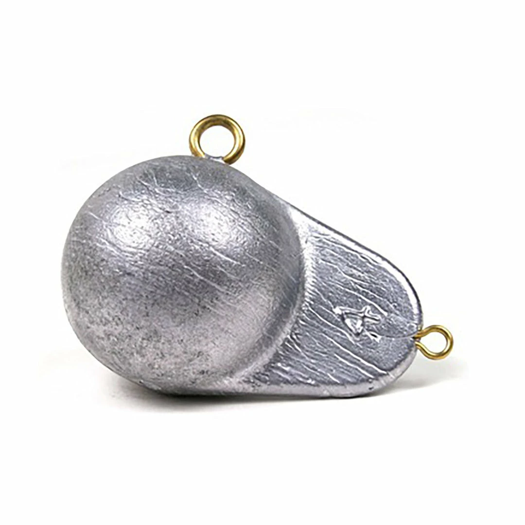 Downrigger balls have two eyes for fins or cable attachment. The underside of the ball is flat to prevent it from rolling around.The 4 lb weight will make a good item for the live bait king mackerel fisherman who uses the downrigger as a release set-up.