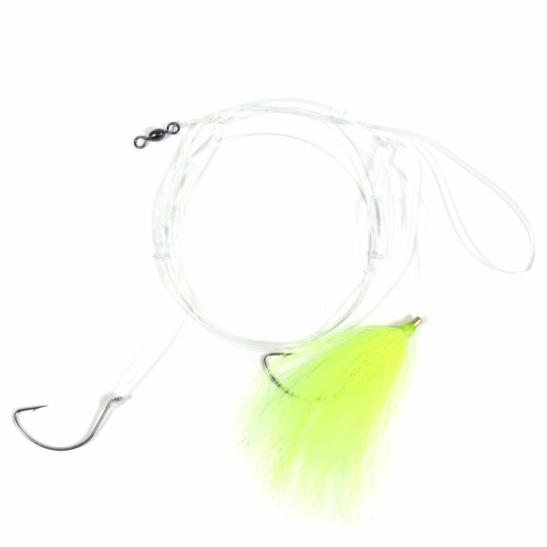 Tied with 2/0 widegap Mustad hooks; 1 with plain hook, 1 with bucktail skirt.