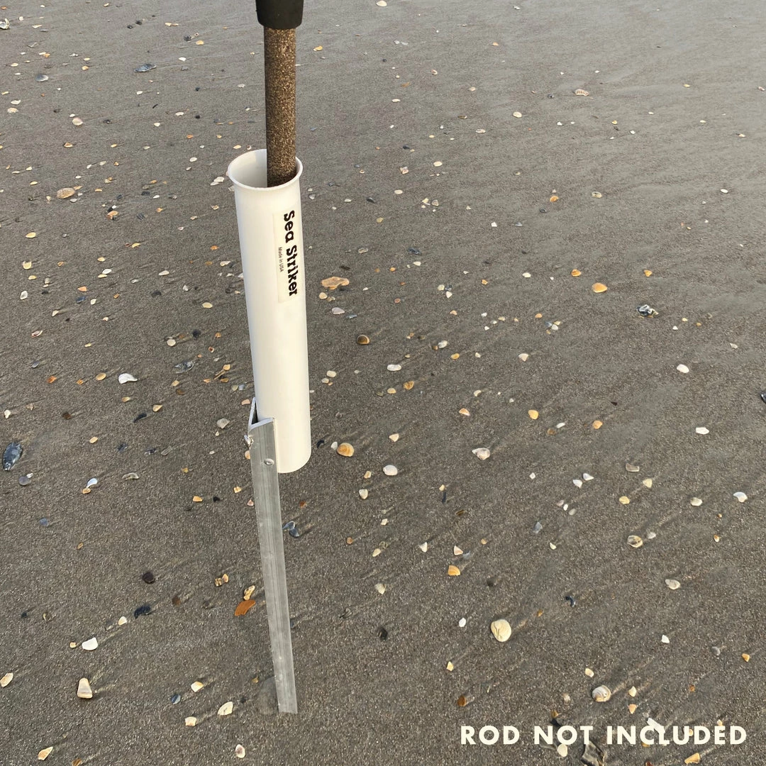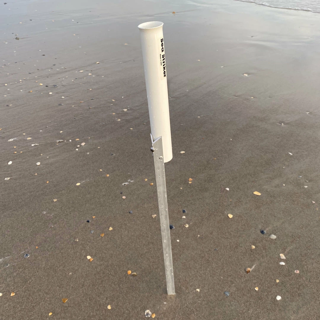 One of the most important pieces of gear for surf fishing. The Sea Striker sand spike with aluminum spike is made from corrosion resistant high-impact plastic and aluminum stake. Angled stake easily pushes into the sand. Available in 28″ or 42″ lengths. Proudly made in the USA.