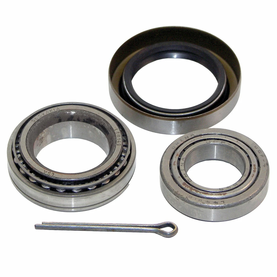 One pair of bearings with races. One grease seal and one cotter pin per bearing. One set of bearings per hub.