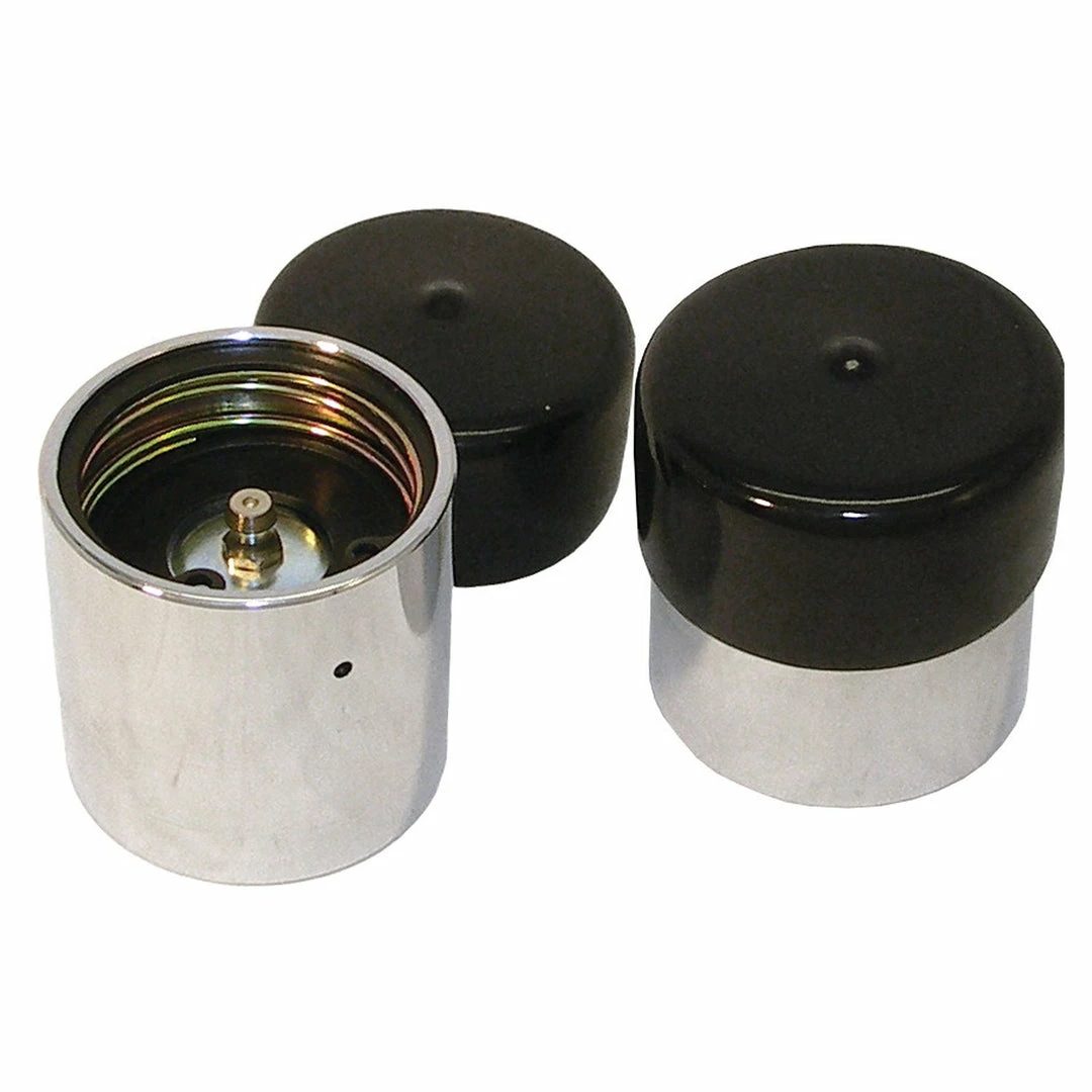 Steel spring keeps hub grease under pressure, guarding against water seepage and failure. Grease fitting in cap.