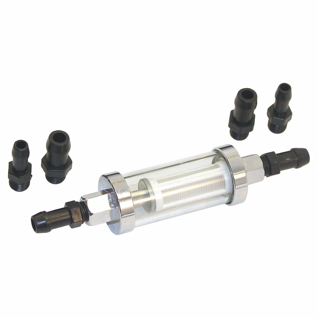 Clear view in-line fuel filter includes 5/16″ and 3/8″ OD barbs for exact match to fuel lines. For use on inboard and outboard engines.