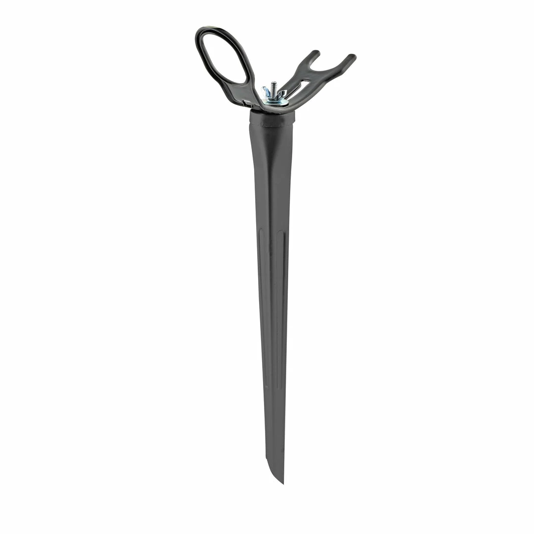 Stake Rod Holder is 15″ length and accommodates most rod styles. Heavy duty metal with 360º yoke adjustment. Can be tilted to any desired height.